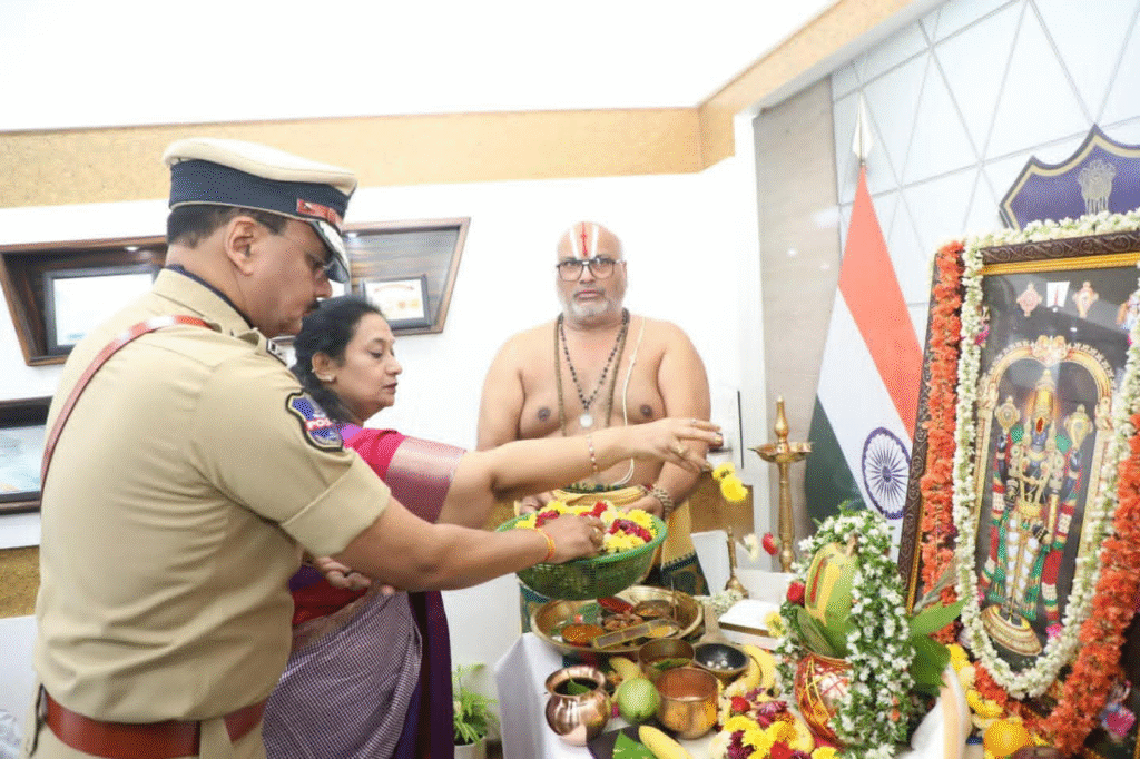హైద‌రాబాద్‌, ఆంధ్ర‌ప్ర‌భ : తెలంగాణ కొత్త డీజీపీ (Telangana New DGP) గా శివధర్ రెడ్డి ఈ రోజు ఉద‌యం బాధ్యతలు చేపట్టారు. ఈ సంద‌ర్భంగా లక్డీకాపూల్ లోని డీజీపీ కార్యాలయంలో శివధర్ రెడ్డి ప్రత్యేక పూజలు నిర్వహించారు. అనంతరం ఆయ‌న‌కు పండితుల ఆశీర్వాదం అంద‌జేశారు.