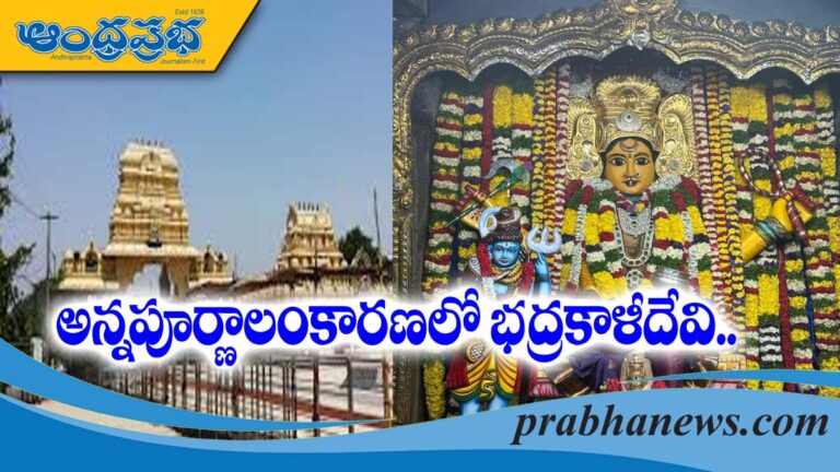 వరంగల్, ఆంధ్రప్రభ : శ్రీ భద్రకాళీదేవీ శరన్నవరాత్రి (దసరా) మహోత్సవాలు భాగంగా ఈ రోజు అమ్మవారు అన్నపూర్ణాలంకార రూపంలో దర్శనం ఇచ్చారు. ఉదయం మకర వాహనసేవ కార్యక్రమం నిర్వహించారు. సాయంత్రం దేవజా దుర్గార్చన చంద్రప్రభ వాహనసేవ కార్యక్రమం ఉంటుంది.