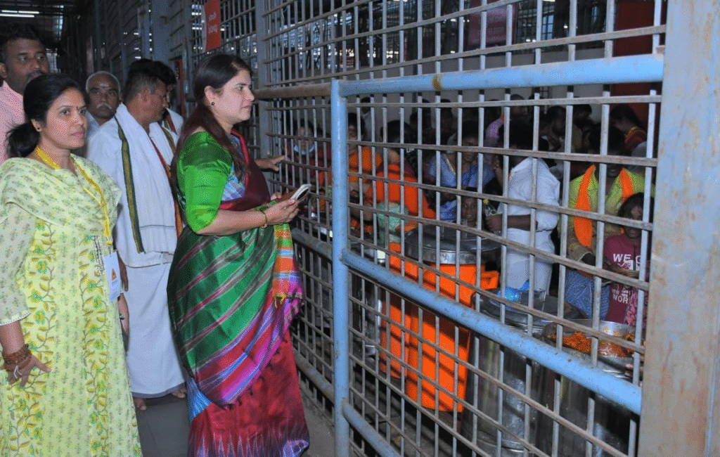 క్యూ లైన్ లో ఉన్న భక్తులకు ఎలాంటి అసౌకర్యం కలగకుండా అన్ని విభాగాలు సమన్వయంతో పని చేయాలని ఆదేశిస్తూ ఇబ్బందులను భక్తులను అడిగి తెలుసుకున్నారు. ప్రత్యేక దర్శనాల కంటే సాధారణ భక్తులకు ప్రాధాన్యత ఇస్తూ, ఉచిత క్యూ లైన్ ద్వారా తక్షణ దర్శనం కల్పించిన దేవస్థాన అధికారులు. భక్తులు శాంతి, నియమ నిబంధనలు పాటిస్తూ దర్శనం చేసుకోవాలని సూచించిన జిల్లా కలెక్టర్. క్యూ లైన్ లో వెళ్లి అమ్మవారి దర్శనంతో పాటు తాగునీరు, లడ్డు ప్రసాదాన్ని కూడా పరిశీలించారు. భక్తులు కూడా తమతో పాటు క్యూ లైన్‌లో వచ్చిన కలెక్టర్ ను చూసి ఆశ్చర్యం వ్యక్తం చేస్తూ అభినందనలు తెలుపటం విశేషం.