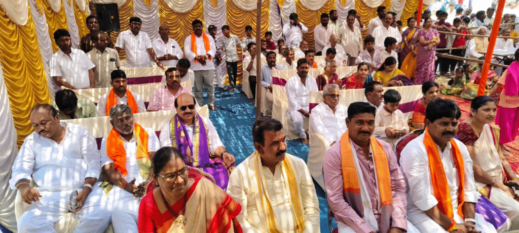 శ్రీ సీతారాముల కల్యాణోత్సవం సందర్భంగా స్థానిక ఎమ్మెల్యే రాష్ట్ర పశుసంవర్ధక క్రీడల శాఖ మంత్రి డాక్టర్ వాకిటి శ్రీహరి దంపతులు భద్రాచలం లో శ్రీ రామ నవమి వేడుకలకు హాజరు కాగా మంత్రి సోదరుడు వాకిటి శేషగిరి రాధిక దంపతులు శ్రీ ఆంజనేయ స్వామి దేవాలయంలో ప్రత్యేక పూజలు నిర్వహించారు. అనంతరం బాజాబజంత్రీల మధ్య రామ్ లీలా మైదానానికి ఊరేగింపుగా పట్టు వస్త్రాలు ముత్యాల తలంబ్రాలు తీసుకువచ్చి అర్చకులకు అందజేశారు. అదేవిధంగా సంగంబండ కు చెందిన గవినోళ్ళ మంజుల బాలకృష్ణ రెడ్డి దంపతులు సమర్పించారు.