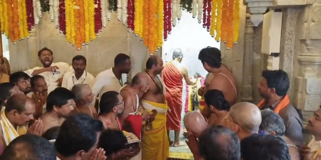 భూపాలపల్లి/రేగొండ, ఆంధ్రప్రభ : జయశంకర్ జిల్లా రేగొండ మండల కేంద్రంలోని శ్రీ లక్ష్మీనరసింహస్వామి దేవాలయ పునఃప్రతిష్ఠ కార్యక్రమం శనివారం అంగరంగ వైభవంగా నిర్వహించారు. ఈ వేడుకకు ప్రముఖ ఆధ్యాత్మిక గురువు త్రిదండి చిన్న జీయర్ స్వామి నేతృత్వం వహించారు. వేద మంత్రోచ్చారణల మధ్య చిన్న జీయర్ స్వామి గర్భగుడిలోకి ప్రవేశించి సుమారు 20 నిమిషాల పాటు ప్రత్యేక పూజలు నిర్వహించారు.