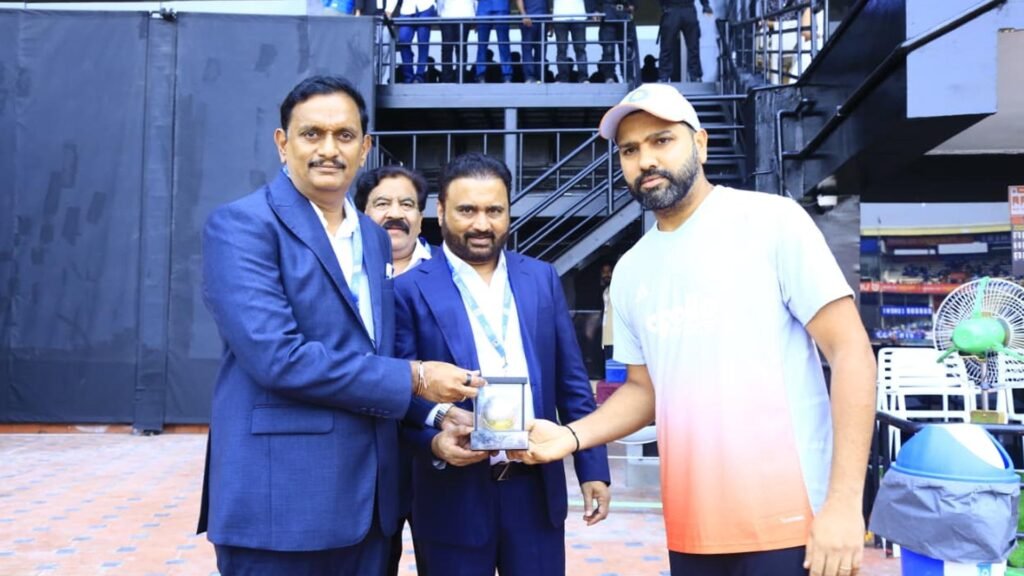 SPORTS | ఆంధ్రప్రభ, విశాఖపట్నం : ఏసీఏ–వీడీసీఏ అంతర్జాతీయ క్రికెట్ స్టేడియంలో దక్షిణాఫ్రికాతో మూడో వన్డేలో తలపడేందుకు విచ్చేసిన ఇండియా క్రికెట్ టీంకు ఏసీఏ ప్రెసిడెంట్ కేశినేని శివనాథ్, సెక్రటరీ సానా సతీష్ బాబు ఘన స్వాగతం పలికారు. అనంతరం సీనియర్ ప్లేయర్స్ ఓపెనర్ బ్యాట్స్ మెన్ రోహిత్ శర్మ, స్టార్ బ్యాట్స్ మెన్ విరాట్ కోహ్లీ, కోచ్ గౌతమ్ గంభీర్ లకు ఏసీఏ తరఫున జ్ఞాపికలు అందజేశారు.