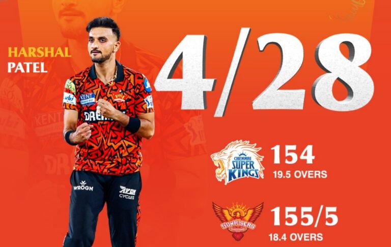 ఛేదనలో సన్‌రైజర్స్‌ 18.4 ఓవర్లలో 5 వికెట్లకు 155 రన్స్‌ చేసి నెగ్గింది. హెడ్‌ (19), అనికేత్‌ (19), నితీశ్‌ (19 నాటౌట్‌) ఆకట్టుకున్నారు. నూర్‌కు 2 వికెట్లు దక్కాయి. ప్లేయర్‌ ఆఫ్‌ ద మ్యాచ్‌గా హర్షల్‌ నిలిచాడు.