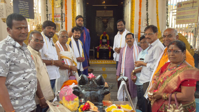 కరీమాబాద్, ఆంధ్రప్రభ ; గ్రేటర్ వరంగల్ లోని శివనగర్ శ్రీ శివ భక్త మార్కండేయ దేవాలయాన్ని 34 డివిజన్ శ్రీ సీతారామచంద్ర స్వామి దేవాలయం ట్రస్ట్ కమిటీ సందర్శించారు. ఉదయం శ్రీ సీతారామచంద్ర స్వామి దేవాలయం కమిటీ కార్యవర్గ సభ్యులకు మార్కండేయ దేవాలయం అభివృద్ధి కమిటీ అధ్యక్షుడు వడ్నాల మల్లయ్య, కన్వీనర్ వడ్నాల సదానందం స్వాగతం పలికారు. పూజారులు వారిచే మహా శివుడికి పూజలు, అభిషేకం చేయించారు.ఈ సందర్భంగా రామాలయం ట్రస్ట్ , ప్రధాన కార్యదర్శి మంచాల కృష్ణమూర్తి, శ్రీరాంరాజేష్, మాట్లాడుతూ దేవాలయంలో ప్రతిష్టించిన శివలింగం చూసి అబ్బురపడినారు. బ్రహ్మసూత్రం చే శివలింగాన్ని శిల్పి ఈ శివలింగాన్ని రూపొందించారు. బ్రహ్మసూత్రంతో ప్రతిష్టించిన శివలింగం మహిమాన్వితం కలిగి ఉంటుందని వారు అన్నారు. కార్యక్రమంలో డాక్టర్ రవీందర్, పగడాల సతీష్, బత్తుల నవీన్, తదితరులు పాల్గొన్నారు.