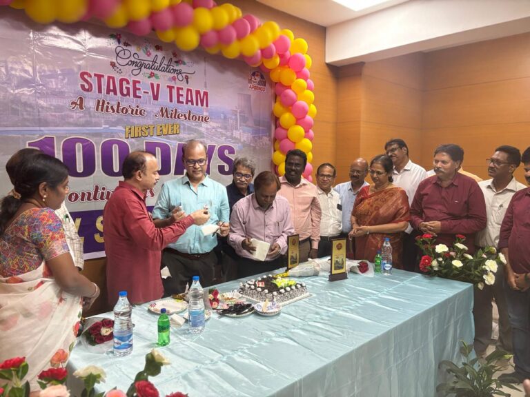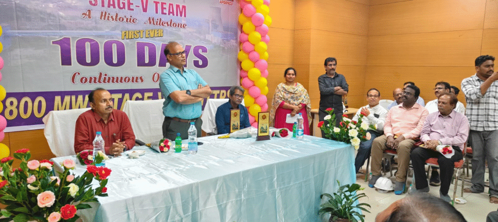 వంద రోజులు నిరంతరాయంగా నాణ్యమైన విద్యుదుత్పత్తితో కృషి చేసిన జూనియర్, సీనియర్ ఇంజనీర్లకు, నిర్వహణ మరమ్మతుల సిబ్బందికి ప్రత్యేక అభినందనలు తెలిపారు. స్టేజ్ – 5 పర్యవేక్షక ఇంజనీర్లు ఓ అండ్ ఎం, కాంట్రాక్టు కార్మికుల నేతృత్వంలో ఈ రికార్డు సాధించడం ఎంతో సంతోషదాయకమన్నారు. స్టేజ్ – 5 ఎరెక్షన్ సమయంలో ఉన్న అధికారులను ఆహ్వానించి ఘనంగా సత్కరించారు.