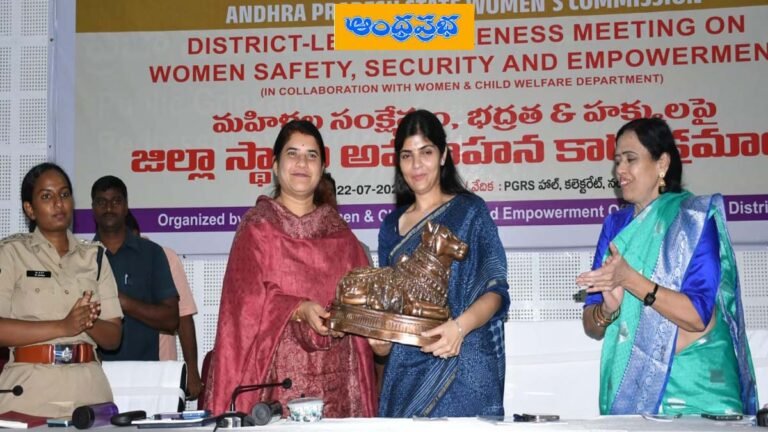 నంద్యాల బ్యూరో, జులై 22 (ఆంధ్రప్రభ) : మహిళా భద్రతకు రాష్ట్ర ప్రభుత్వం (State Government) అనేక చట్టాలు రూపొందించడం జరిగిందని, వాటి పట్ల మహిళలు అవగాహన కలిగి ఉండాలని రాష్ట్ర మహిళా కమిషన్ చైర్ పర్సన్ డా.రాయపాటి శైలజ (Dr. Rayapati Sailaja) పేర్కొన్నారు. మంగళవారం కలెక్టరేట్ లోని పీజీఆర్ఎస్ హాలులో జిల్లా కలెక్టర్ రాజకుమారి గణియా (Rajakumari Ganiya) ఆధ్వర్యంలో మహిళా శిశు సంక్షేమం, వైద్యారోగ్యం, జీఎస్ డబ్ల్యూఎస్ అనుబంధ శాఖల అధికారులు, సిబ్బంది, కళాశాల అమ్మాయిలతో రాష్ట్ర మహిళా కమిషన్ చైర్ పర్సన్ డా.రాయపాటి శైలజ అధ్యక్షతన మహిళల సంక్షేమం, రక్షణ, భద్రత, హక్కులు, మహిళా సాధికారత అంశాలపై అవగాహన సదస్సు నిర్వహించారు.