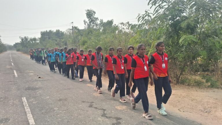 Students | కుంటాల, ఆంధ్రప్రభ : జనవరి 31 గజ్జలమ్మ ఆలయ ఆరో వార్షికోత్సవం ఉత్సాహాలు ముగియడంతో అమ్మవారికి సేవలు చేయడానికి కుంటాల తెలంగాణ ఆదర్శ పాఠశాల విద్యార్థులు తమ వంతుగా సేవ చేయడానికి కాలినడకన అమ్మవారి ఆలయానికి వెళుతుండగా ఆంధ్రప్రభ కెమెరాకు చిక్కారు. దీంతో పలువురు విద్యార్థులు తాము ఇంటర్ ఫస్టియర్ సెకండియర్ గజ్జలమ్మ వార్షికోత్సవ సందర్భంగా భక్తులకు ఎలాంటి ఇబ్బందులు కలగకుండా వాలంటరీ సేవలు చేయడానికి వెళుతున్నామని వారు పేర్కొన్నారు. దీంతో ప్రిన్సిపాల్ ఎత్రాజ్ రాజు దాదాపు 50 మందికి పైగా విద్యార్థులు అమ్మవారి సేవకు పంపినట్టు ఆయన తెలిపారు.
