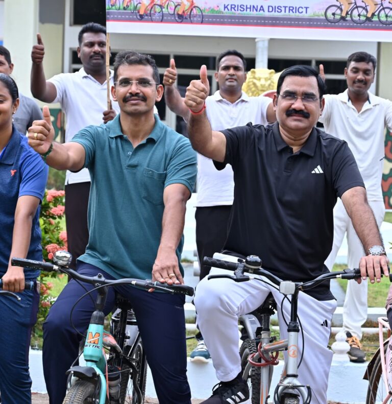 ( ఆంధ్రప్రభ, మచిలీపట్నం ప్రతినిధి) : కృష్ణాజిల్లా (Krishna District) పోలీసులు బందరులో సన్ డే ఆన్ సైకిల్ (Sunday on Cycle) సందడి చేశారు. ఈ కార్యక్రమాన్ని జిల్లా ఎస్పీ ఆర్.గంగాధరరావు (District SP R. Gangadhara Rao) ప్రారంభించారు. ఎస్పీ సైతం సైకిల్ పై హ్యాయిగా.. జాలీగా ..జోరుగా బందరు రోడ్డులో సందడి చేశారు. కేంద్ర ,రాష్ట్ర ప్రభుత్వాల (Central and State Govts.) ఉత్తర్వుల మేరకు ఫిట్ ఇండియా (Fit India) లో భాగంగా, కృష్ణా జిల్లా పోలీస్ శాఖ (Police Department) ఆధ్వర్యంలో ఆదివారం ఉదయం సన్ డే ఆన్ సైకిల్ కార్యక్రమాన్ని ఘనంగా ప్రారంభించారు. ఈ కార్యక్రమాన్ని కృష్ణాజిల్లా ఎస్పీ ఆర్.గంగాధరరావు, పచ్చ జెండా ఊపి ప్రారంభించారు. ఏఆర్ అడిషనల్ ఎస్పీ సత్యనారాయణ , బందరు డీఎస్పీ సీహెచ్ రాజా , బందరు ఇన్ స్పెక్టర్లు, రిజర్వ్ ఇన్ స్పెక్టర్లు. ఇతర పోలీసు అధికారులు పెద్ద సంఖ్యలో సైక్లింగ్ చేశారు. జిల్లా పోలీస్ కార్యాలయం (District Police Office) నుంచి లక్ష్మీ టాకీస్ సెంటర్ మీదుగా, హౌసింగ్ బోర్డు కాలనీ, త్రీ పిల్లర్స్ సెంటర్, కోనేరు సెంటర్, రేవతి సెంటర్, బస్టాండ్ సెంటర్, లక్ష్మీ టాకీస్ సెంటర్ మీదుగా తిరిగి జిల్లా పోలీస్ కార్యాలయం వద్ద ఈ సైక్లింగ్ బృందం చేరింది. ఈ సందర్భంగా జిల్లా ఎస్పీ మాట్లాడుతూ, పోలీస్ సిబ్బంది ఎప్పుడూ ప్రజల భద్రత కోసం కష్టపడుతూ 24 గంటలు విధుల్లో ఉంటారని, వారిలో శారీరక దృఢత్వం మానసిక ఉల్లాసం చాలా అవసరమని, కేంద్ర రాష్ట్ర ప్రభుత్వాల పిలుపు మేరకు సన్ డేస్ ఆన్ సైకిల్ కార్యక్రమాన్ని ప్రారంభించామన్నారు. సైక్లింగ్ తో ఆరోగ్యంగా ఉండటమే కాకుండా, మానసిక ఒత్తిడి తగ్గుతుందని, సిబ్బంది ఆరోగ్యంగా ఉంటేనే ప్రజలకు మరింత మెరుగైన సేవలను అందించగలరన్నారు.