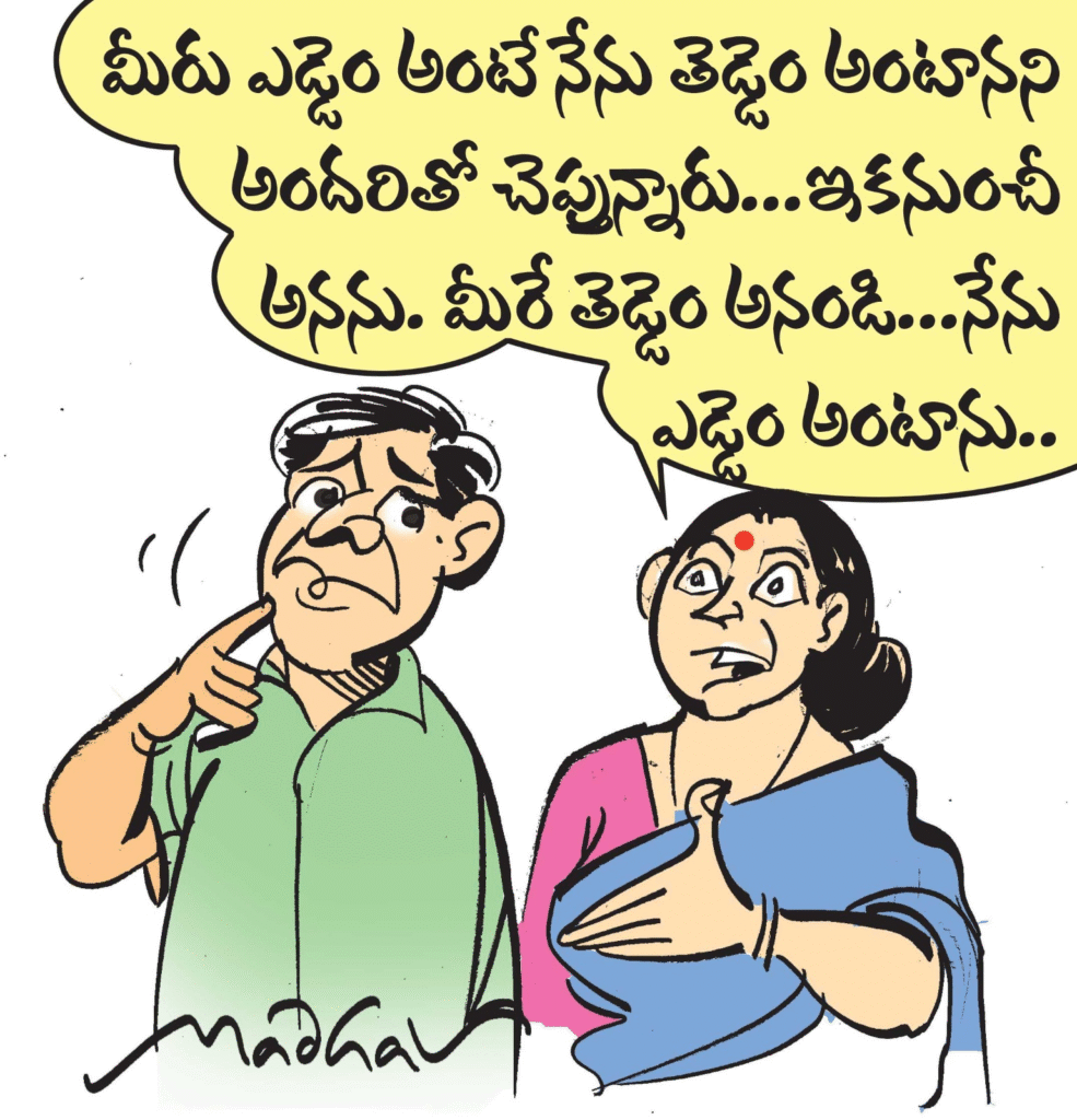 బాబోయ్! ఎన్ని ఉన్నాయో చూడండి! నేను ఉపమాలంకారాలుగా వ్రాశాను గాని, పోతన్నగారు రూపకములు (metaphor) గానే చెప్పారు. ఇంత లోతుగా కాకపోయినా, హస్యం చిందేవి కొన్నున్నాయి! అలాంటిదే, “చాదస్తపు మొగుడు చెబితే వినడు. కొడితే ఏడుస్తాడు” అనేది. ఏది చెప్పినా, ‘నో’అంటారు కొందరు. అదేదో వారి ప్రివిలీజ్ లాగ! అప్పట్లో ‘సీతయ్య’అనే సినిమా వచ్చింది. ‘ఎవరి మాట వినడు’అన్నది ట్యాగ్లైన్. చెపుతున్నది మన మంచికా కాదా అని ఆలోచించనక్కర లేదా? మన ట్రంప్ గారు కూడా ఆ బాపతే. కానీ, శంఖం ఊదేవాడు మోదీ గారు కదా! విని తీరవలసిందే.