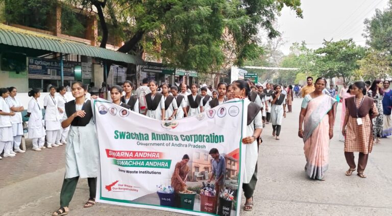 ఈ సందర్భంగా ఆసుపత్రి క్యాజువల్టీ విభాగం నుండి ప్రారంభమైన భారీ అవగాహన ర్యాలీ గైనెక్ వార్డు వరకు కొనసాగింది. ర్యాలీలో పాల్గొన్న ఆసుపత్రి సిబ్బంది, నర్సింగ్ విద్యార్థులు బ్యానర్లు ప్రదర్శిస్తూ “మన చెత్త – మన బాధ్యత” అనే నినాదాలతో రోగులు, వారి సహాయకుల్లో పరిశుభ్రతపై చైతన్యం నింపారు. ర్యాలీ అనంతరం గైనెక్ వార్డు ప్రాంగణంలో మొక్కలు నాటే కార్యక్రమాన్ని నిర్వహించారు. ఆసుపత్రి పరిసరాలను పచ్చదనంతో నింపి, శుభ్రమైన, ఆహ్లాదకర వాతావరణం కల్పించడం లక్ష్యంగా ఈ ప్లాంటేషన్ చేపట్టారు. ఇదే సందర్భంలో ఎమర్జెన్సీ వార్డు ముందు తడి చెత్త, పొడి చెత్త, ప్రమాదకర బయో-మెడికల్ వ్యర్థాలను వేర్వేరు రంగుల డబ్బాల్లో వేరు చేసి వేయడం యొక్క ప్రాముఖ్యతను నర్సింగ్ విద్యార్థులు, శానిటేషన్ సిబ్బంది ప్రజలకు ప్రత్యక్షంగా వివరించారు.