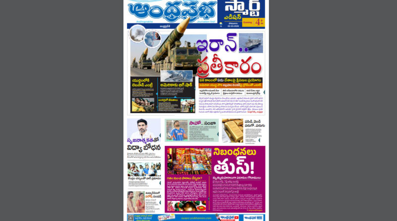 ఆంధ్రప్రభ స్మార్ట్ ఎడిషన్ 02-03-2026, 4.00PM ap 👉 ఇరాన్ ప్రతీకారం..ఏడు దేశాలపై