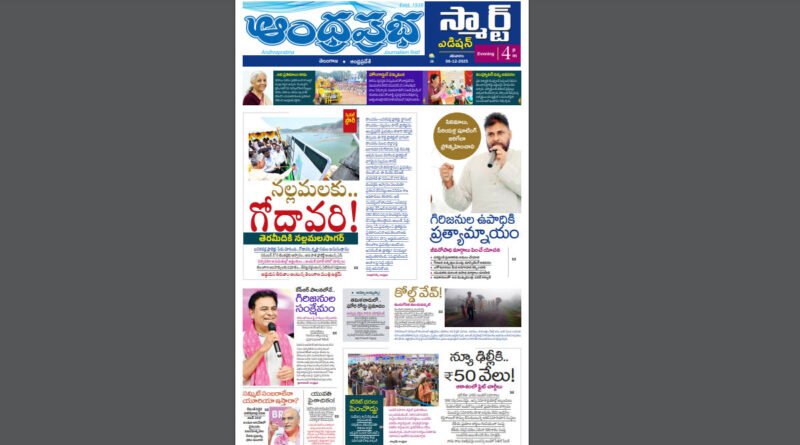 ఆంధ్రప్రభ స్మార్ట్ ఎడిషన్ 06-12-2025, 4.00PM👉 నల్లమలకు తరలిరానున్న గోదావరి👉 ఢిల్లీకి ₹50వేలు..