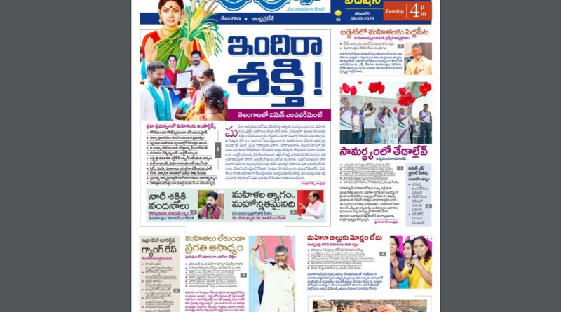 Andhra Prabha Smart Edition – ఇందిరా శక్తి /తేడాలేమీ లేవ్/బేరమాడిన బాబు ఆంధ్రప్రభ స్మార్ట్ ఎడిషన్ 08-03-2025, 4PM 👉 ఇందిరా శక్తి.. విమెన్ ఎంపవర్మెంట్👉