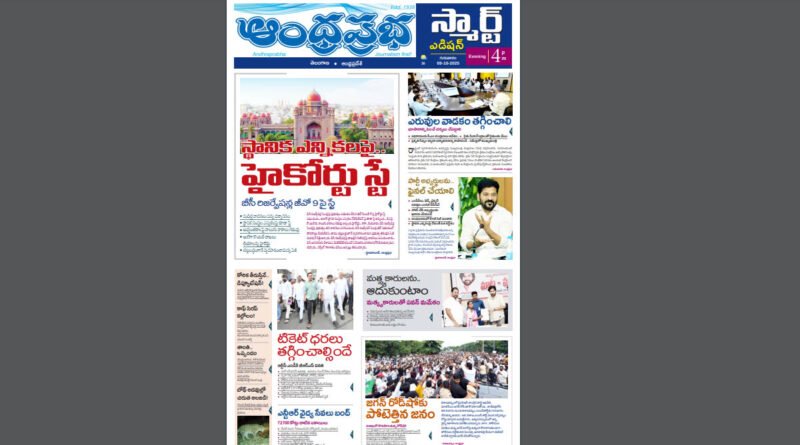ఆంధ్రప్రభ స్మార్ట్ ఎడిషన్ 09-10-2025, 4.00PM 👉 బీసీ రిజర్వేషన్లు.. స్థానికంపై హైకోర్టు