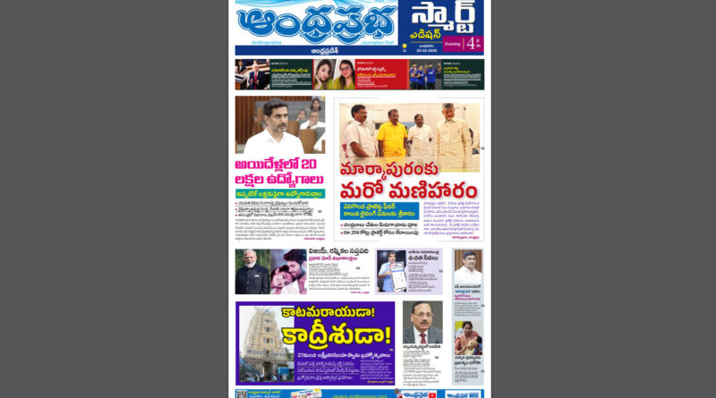 అంధ్రప్రభ స్మార్ట్ ఎడిషన్, 25.02.26, ఎపి అయిదేళ్లలో 20 లక్షల ఉద్యోగాలువెలుగొండ ప్రాజెక్ట్