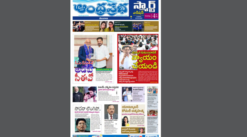 అంధ్రప్రభ స్మార్ట్ ఎడిషన్, 25.02.26, తెలంగాణ సిఎం రేవంత్ రెడ్డితో అడోబ్ సీఈవోకుమ్మెర
