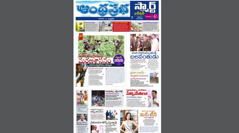 Andhra Prabha Smart Edition |మరణశాసనం/బలవంతుడు/పేల్చివేతలే ఆంధ్రప్రభ స్మార్ట్ ఎడిషన్ 26-12-2025, 4.00PM👉 2025.. మావోయిస్టులకు మరణశాసనం👉 మన హనుమంతుడే