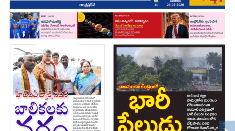 ఆంధ్రప్రభ స్మార్ట్ ఎడిషన్, ఎపి, 28.02.26 వేట్లపాలెంలో పేలుడు..23మంది ఆహుతిప్రతి ఇంటికి క్యూ