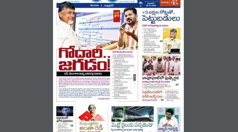 Andhra Prabha Smart Edition – ఆయన మా ఆయనే/గోదారి జగడం ఆంధ్రప్రభ స్మార్ట్ ఎడిషన్ 30-01-2025, 4PM 👉 ఆయన మా ఆయనే.. కాదంటున్న