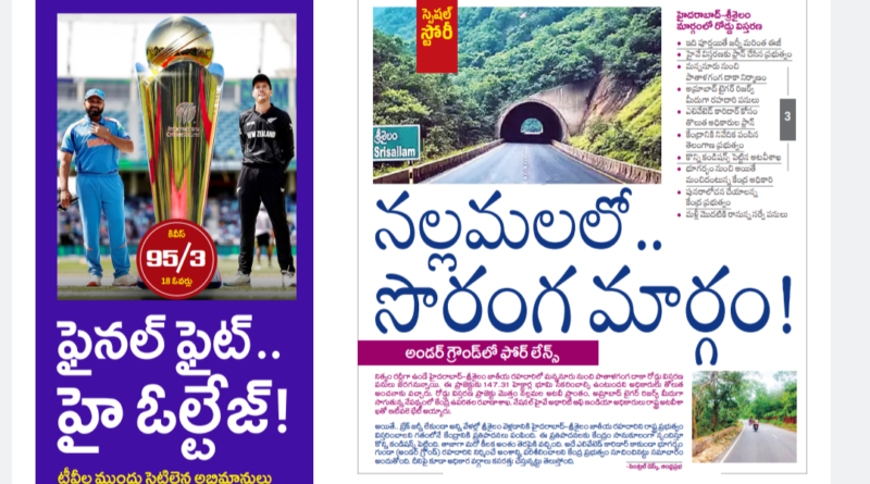 Andhra Prabha Smart Edition – సొరంగ మార్గం/బర్డ్ ఫ్లూ *ఆంధ్రప్రభ స్మార్ట్ ఎడిషన్ 09-03-2025, 4PM*. 👉 *చాంపియన్స్.. స్పిన్తో కివీస్ కట్టడి