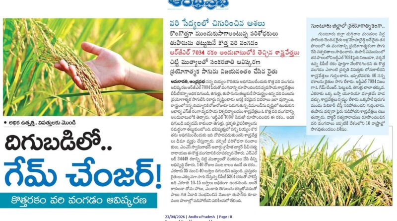 తుపాన్లకూ తలొగ్గని వరి అమరావతి, ఆంధ్రప్రభ : వరి సేద్యంలో కొత్త ఆశలు