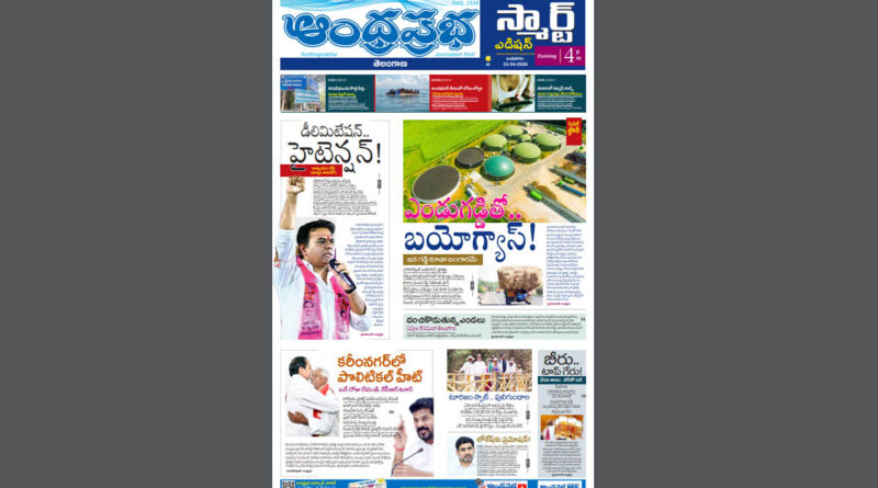 ఆంధ్రప్రభ స్మార్ట్ ఎడిషన్ 15-04-2026, 4.00PM ts 👉 డీలిమిటేషన్ టెన్షన్.. అన్యాయం