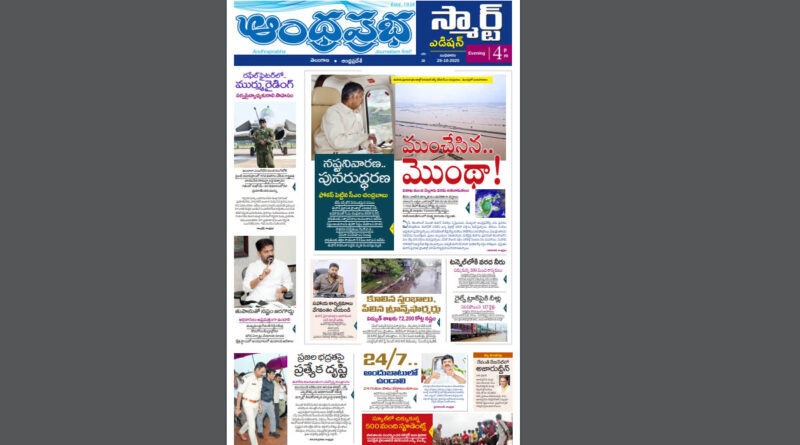 ఆంధ్రప్రభ స్మార్ట్ ఎడిషన్ 29-10-2025, 4.00PM👉 ముంచేసిన మొంథా.. ఏరియల్ సర్వేలో బాబు👉