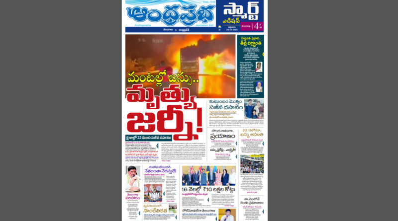 ఆంధ్రప్రభ స్మార్ట్ ఎడిషన్ 24-10-2025, 12.00AM👉 మంటల్లో బస్సు.. మృత్యు జర్నీ👉 నిద్రలోనే