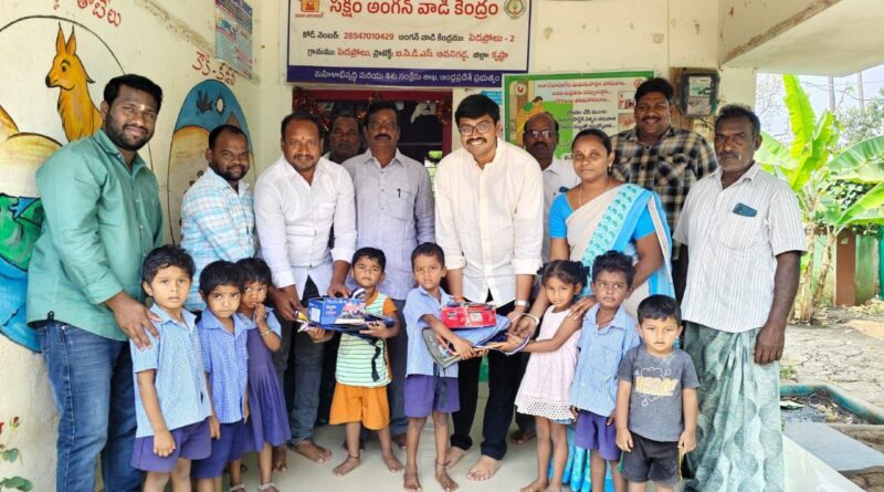 Anganwadi | చిన్నారులకు యూనిఫామ్లు, షూస్ పంపిణీ.. Anganwadi, మోపిదేవి, ఆంధ్రప్రభ :