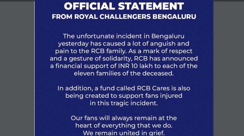 బెంగళూరు – రాయల్ ఛాలెంజర్స్ బెంగళూరు (ఆర్సీబీ) జట్టు విజయోత్సవాల సందర్భంగా చిన్నస్వామి