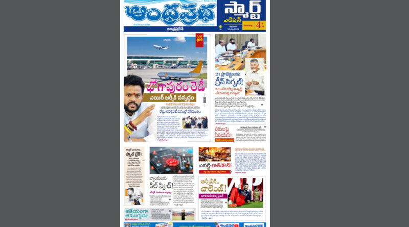 ఆంధ్రప్రభ స్మార్ట్ ఎడిషన్ 10-04-2026, 4.00PM ap 👉 ఎయిర్ జర్నీకి భోగాపురం