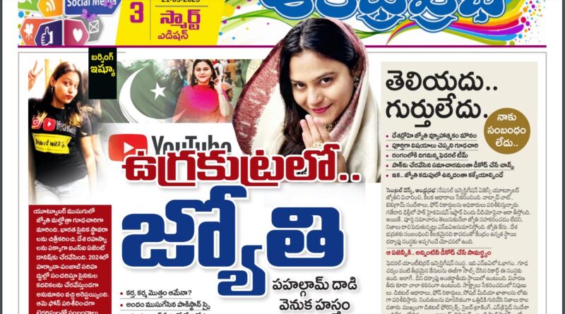 కర్త, కర్మ మొత్తం ఆమేనా?అందం ముసుగేసిన పాకిస్థాన్ స్పైయూట్యూబర్ పేరుతో దేశ ద్రోహంపాక్