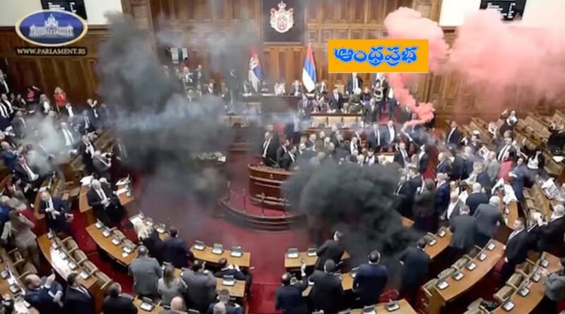 chaos | సెర్బియా పార్లమెంట్ లో రణరంగం.. స్మోక్ బాంబులతో రెచ్చిపోయిన విపక్షాలు