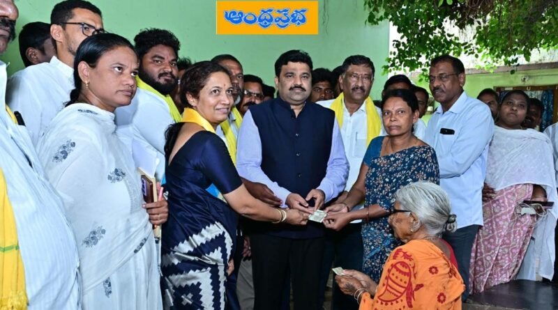 పెన్షన్లను పంపిణీ చేసిన జిల్లా కలెక్టర్ పి.రంజిత్ బాషా, పాణ్యం ఎమ్మెల్యే గౌరు