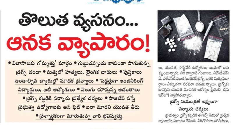 యువతలో డ్రగ్స్ విపత్తు.. హైదరాబాద్, ఆంధ్రప్రభ: రాష్ట్రంలో మాదక ద్రవ్యాల వినియోగం రోజురోజుకూ