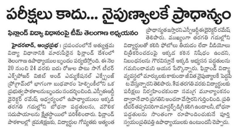 ఫిన్లాండ్ మోడల్ వైపు తెలంగాణ చూపు.. హైదరాబాద్, ఆంధ్రప్రభ : ప్రపంచంలోనే అత్యుత్తమ
