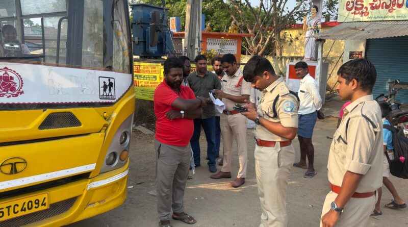 స్కూల్ బస్సులను తనిఖీ చేసిన రవాణా శాఖ అధికారి..