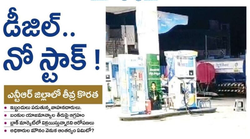 డీజిల్.. నో స్టాక్ ! డీజిల్.. నో స్టాక్ ! ఎన్టీఆర్ జిల్లాలో తీవ్ర కొరతఇబ్బందులు పడుతున్న వాహనదారులు.బంకుల