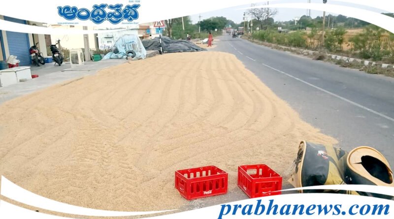 ACCIDENT | ఇదీ ప్రమాదకరం! రైతులకు కల్లాలు లేక.. రహదారులపై ధాన్యం ఆరబోత