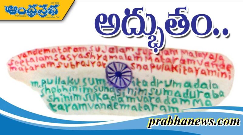 బియ్యపు గింజ పై వందేమాతర గీతం నర్సంపేట, ఆంధ్రప్రభ : మాతృభూమి దాస్యశృంకలాలను తెంచేందుకు స్వాతంత్య్ర ఉద్యమ స్ఫూర్తిని రగిలించిన