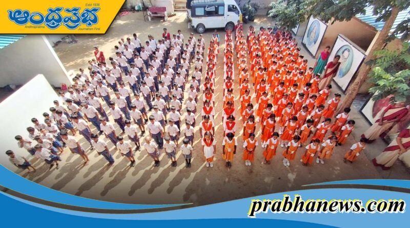వందేమాతరం ఆకారంలో విద్యార్థుల ప్రదర్శన బాసర, ఆంధ్రప్రభ : మండల కేంద్రంలోని హంస