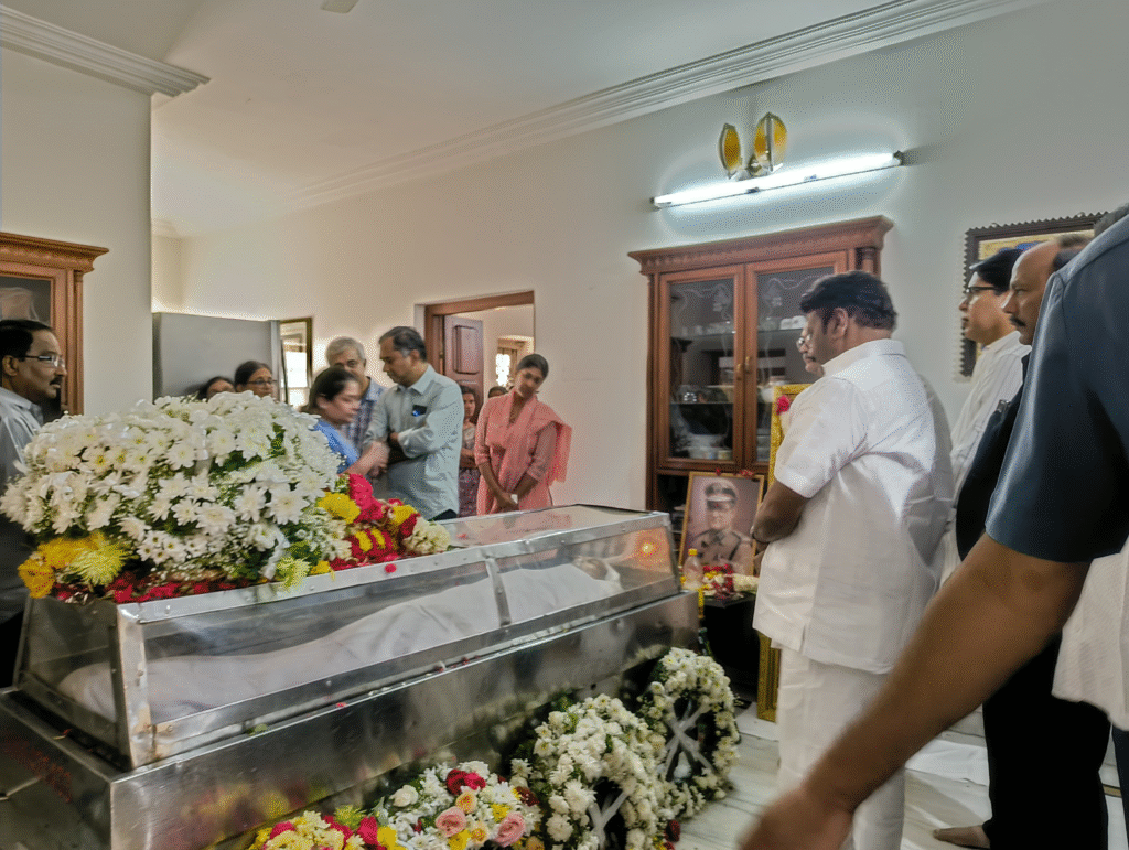 హైదరాబాద్, ఆంధ్రప్రభ : మాజీ DGP హెచ్.జె. దొరకు మాజీమంత్రి, డిప్యూటీ ప్లోర్ లీడర్ తలసాని శ్రీనివాస్ యాదవ్ నివాళులర్పించారు. నిమ్స్ లో చికిత్స పొందుతూ హెచ్.జె.దొర నిన్న చనిపోయారు. ఆయన మరణవార్త తెలుసుకున్న ఎమ్మెల్యే తలసాని శ్రీనివాస్ యాదవ్ ఇవాళ బంజారాహిల్స్ లోని నివాసానికి వెళ్లి పార్ధీవదేహంపై పూల మాల వేసి నివాళులర్పించారు. అనంతరం కుటుంబ సభ్యులను పరామర్శించి తన సంతాపం తెలిపారు.