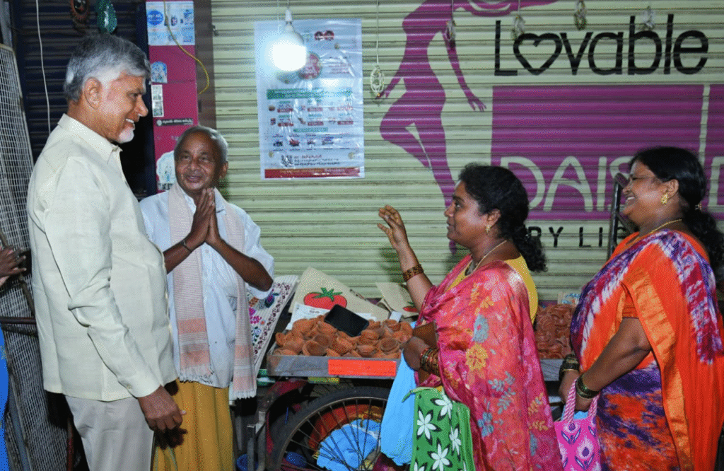 ఆంధ్రప్రదేశ్ ముఖ్యమంత్రి చంద్రబాబు నాయుడు ఆదివారం విజయవాడలోని ప్రముఖ బీసెంట్ రోడ్‌లో పర్యటించారు. ఈ సందర్భంగా ఆయన సాధారణ ప్రజలు, చిరు వ్యాపారులతో కలిసి మాట్లాడారు. రోడ్డు పక్కన వ్యాపారం చేసుకునేవారు, చిన్న జనరల్ స్టోర్‌లు, చెప్పుల దుకాణాల యజమానులతో ఆయన ముచ్చటించారు.