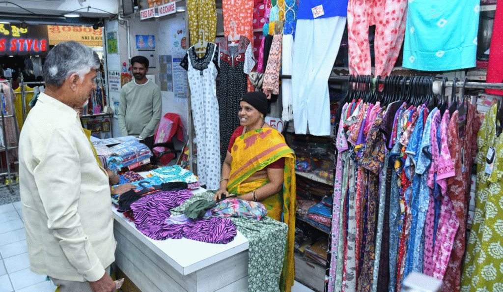 అలాగే, మరో వీధి వ్యాపారి యక్కలి బాలకృష్ణతో, చెప్పుల షాపు యజమాని చదలవాడ వెంకటకృష్ణారావుతో మాట్లాడారు. చెప్పులపై జీఎస్టీ తగ్గింపు ప్రభావం, వ్యాపారం తీరు గురించి ఆరా తీశారు. బట్టల షాపులోకి వెళ్లి అక్కడ సేల్స్‌గర్ల్‌గా పనిచేస్తున్న గొడవర్తి లక్ష్మీతోనూ మాట్లాడారు.