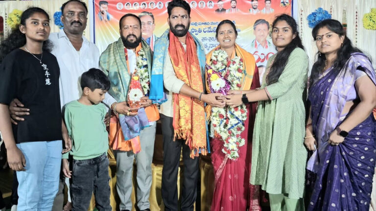 బెల్లంపల్లి, ఆంధ్రప్రభ : బెల్లంపల్లి పట్టణాన్ని ప్లాస్టిక్ రహిత పట్టణంగా అభివృద్ధిపరిచేందుకు ఎమ్మెల్యే గడ్డం వినోద్ సహకారం తో పాటు , కాంగ్రెస్ సీనియర్ నాయకుల, ప్రజల అభిప్రాయాలు తీసుకొని ముందుకు వెళ్తామని మున్సిపల్ చైర్ పర్సన్ దావస్వాతి రమేష్ బాబు అన్నారు.ఆదివారం రాత్రి బెల్లంపల్లి మండలం ఆకెనపల్లి గ్రామంలో మున్సిపల్ చైర్ పర్సన్ దావ స్వాతి, వైస్ చైర్మన్ రాగంశెట్టి సతీష్, మున్సిపల్ కౌన్సిలర్లకు ఆదివారం రాత్రి వంజరి రాజేశం ఏర్పాటు చేసిన ఆత్మీయ సన్మానకార్యక్రమానికి మున్సిపల్ చైర్ పర్సన్ ముఖ్య అతిథిగా హాజరై మాట్లాడారు.