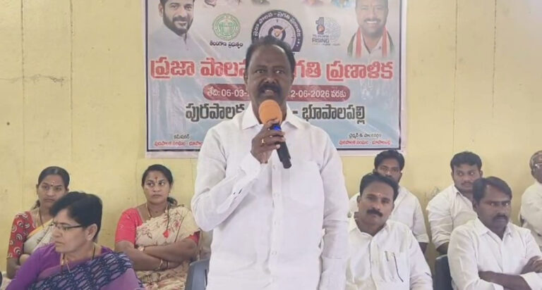 ఆంధ్రప్రభ ప్రతినిధి , భూపాలపల్లి: రాష్ట్ర ప్రభుత్వం ప్రతిష్టాత్మకంగా చేపట్టిన ప్రజాపాలన ప్రగతి ప్రణాళిక కార్యక్రమాన్ని ప్రజాప్రతినిధులు, అధికారులు సమన్వయంతో విజయవంతం చేయాలని భూపాలపల్లి ఎమ్మెల్యే గండ్ర సత్యనారాయణ రావు పిలుపునిచ్చారు. శుక్రవారం భూపాలపల్లి మున్సిపాలిటీ పరిధిలోని 3వ వార్డులో ప్రజాపాలన ప్రగతి ప్రణాళిక కార్యక్రమాన్ని ఎమ్మెల్యే జీఎస్ఆర్ మున్సిపల్ చైర్మన్ బుర్ర కొమరయ్య, వైస్ చైర్మన్ అంబాల శ్రీనివాస్ , జిల్లా అదనపు కలెక్టర్ విజయలక్ష్మి, మున్సిపల్ కమిషనర్ తో కలిసి ప్రారంభించారు.