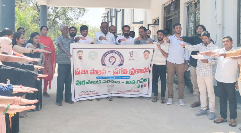 “తెలంగాణ రాష్ట్ర ప్రభుత్వం చేపడుతున్న 99 రోజుల కార్యాచరణ ప్రణాళికలో భాగంగా అచ్చంపేట మునిసిపాలిటీ నిర్వహించే పరిశుభ్రత కార్యక్రమాల్లో పాల్గొంటామని, మనసా–వాచా–కర్మణా మునిసిపాలిటీ అభివృద్ధికి తమ వంతు కృషి చేస్తామని” ప్రతిజ్ఞ చేశారు. అచ్చంపేట పట్టణాన్ని పరిశుభ్రంగా, ఆరోగ్యకరంగా ఉంచడంలో ప్రజల సహకారం కీలకమని కౌన్సిలర్లు, అధికారులు పేర్కొన్నారు. ఈ కార్యక్రమంలో కౌన్సిలర్లు కానోజు మనోహర్ ప్రసాద్, రమేష్ రావ్, గోపిశెట్టి శివ, మేనేజర్ రమేష్ నాయక్, రాజు నాయక్, సానిటరీ ఇన్స్పెక్టర్ గణేష్, టిపిఓ మనోజ, మండల మహిళా సమాఖ్య సభ్యురాల్లు, మునిసిపల్ సిబ్బంది, తదితరులు పాల్గొన్నారు.