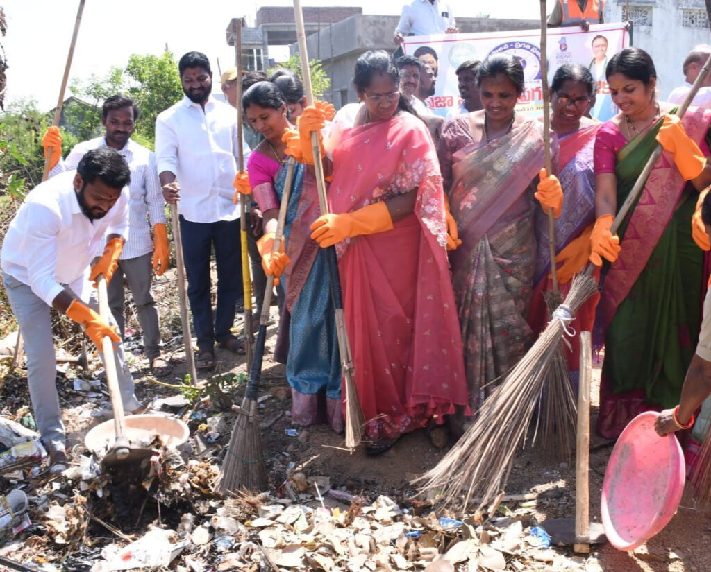 చెత్తను తొలగిస్తున్న మున్సిపల్ చైర్ పర్సన్, కమిషనర్, పాలకవర్గం
