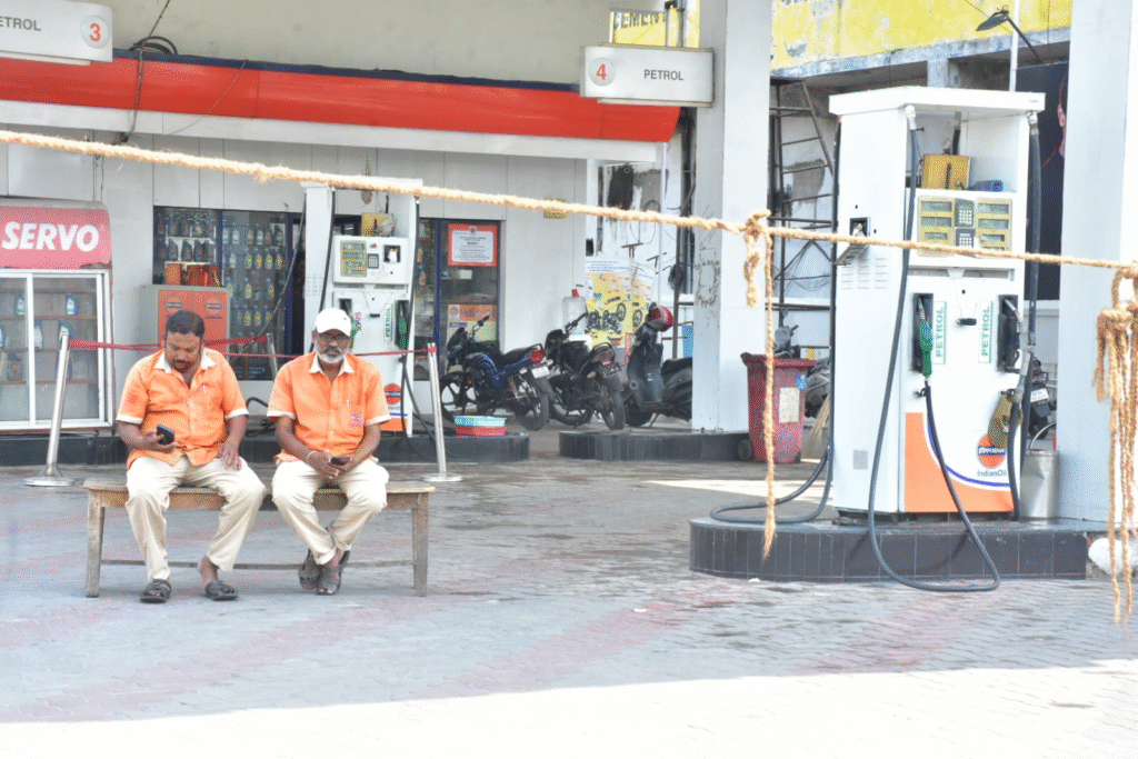 TG | కరీంనగర్, ఆంధ్ర ప్రభ : పెట్రోల్ బంకుల వద్ద వాహనదారులు బారులు తీరారు. కరీంనగర్ జిల్లా కేంద్రంలో బుధవారం పెట్రోల్ బంకుల వద్ద వాహనదారులు వాడిగాపులు కాసారు. చాలా పెట్రోల్ బంకుల వద్ద నో స్టాక్ బోర్డులు ఉండడం యుద్ధ వాతావరణం నేపథ్యంలో మరింత పెట్రోల్, డిజిల్ కొరత ఏర్పడుతుందని భావించిన వాహనదారులు పెద్ద ఎత్తున పెట్రోల్ బంకుల వద్దకు చేరుకోవడంతో పెట్రోల్ బంకుల ముందు రహదారులపై ట్రాఫిక్ ఇబ్బందులు ఏర్పడ్డాయి.