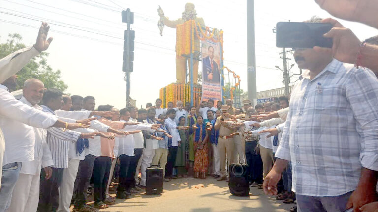 తొర్రూరు టౌను,ఆంధ్రప్రభ : ప్రతి వాహనదారుడు రోడ్డు భద్రత నియమాలు పాటించాలని స్థానిక ఎస్సై కోరారు మంగళవారం భారతరత్న డాక్టర్ బి.ఆర్ అంబేద్కర్ పురస్కరించుకుని విగ్రహానికి టిపిసిసి వైస్ ప్రెసిడెంట్ రాజేందర్ రెడ్డి తదితరులు పూలమాలలు సమర్పించి పుష్పాంజలి ఘటించారు. అనంతరం స్థానిక ప్రజలను ఉద్దేశించి ఎస్.ఐ జి ఉపేందర్ మాట్లాడుతూ పోలీస్ శాఖ ఆధ్వర్యంలో అర్రైవ్ అలైవ్ కార్యక్రమాన్ని మూడో ఫీజు నిర్వహించడం జరుగుతుందని ఇందులో భాగంగా ప్రతి గ్రామంలో హెల్మెట్ ధరించి ప్రయాణించాలని సూచించడంతో కొన్ని గ్రామాల్లో హెల్మెట్ లేని వారు గ్రామాలలో ప్రవేశించ రాదని నిర్ణయం తీసుకొని కఠినంగా అమలు చేస్తున్నారని అన్నారు. ఈ సందర్భంగా ఎస్సై జోకేందర్ వాహనాలు నడిపేటప్పుడు తప్పనిసరిగా హెల్మెట్ ధరిస్తామని దైవ సాక్షిగా జయంతి రోజున ప్రతిజ్ఞ చేయించారు హెల్మెట్ ధరించి ప్రయాణించడంతో అకస్మాత్తుగా ప్రమాదం సంభవిస్తే ప్రాణమా పరిస్థితి నుండి రక్షించుకోవచ్చని చెప్పారు ఈ కార్యక్రమంలో మున్సిపల్ చైర్మన్ తులం శ్రవణ్ కుమార్ వైస్ చైర్మన్ సోమ రజిని రాజశేఖర్, కౌన్సిలర్లు మీద వర్గాల ప్రజలు పాల్గొన్నారు